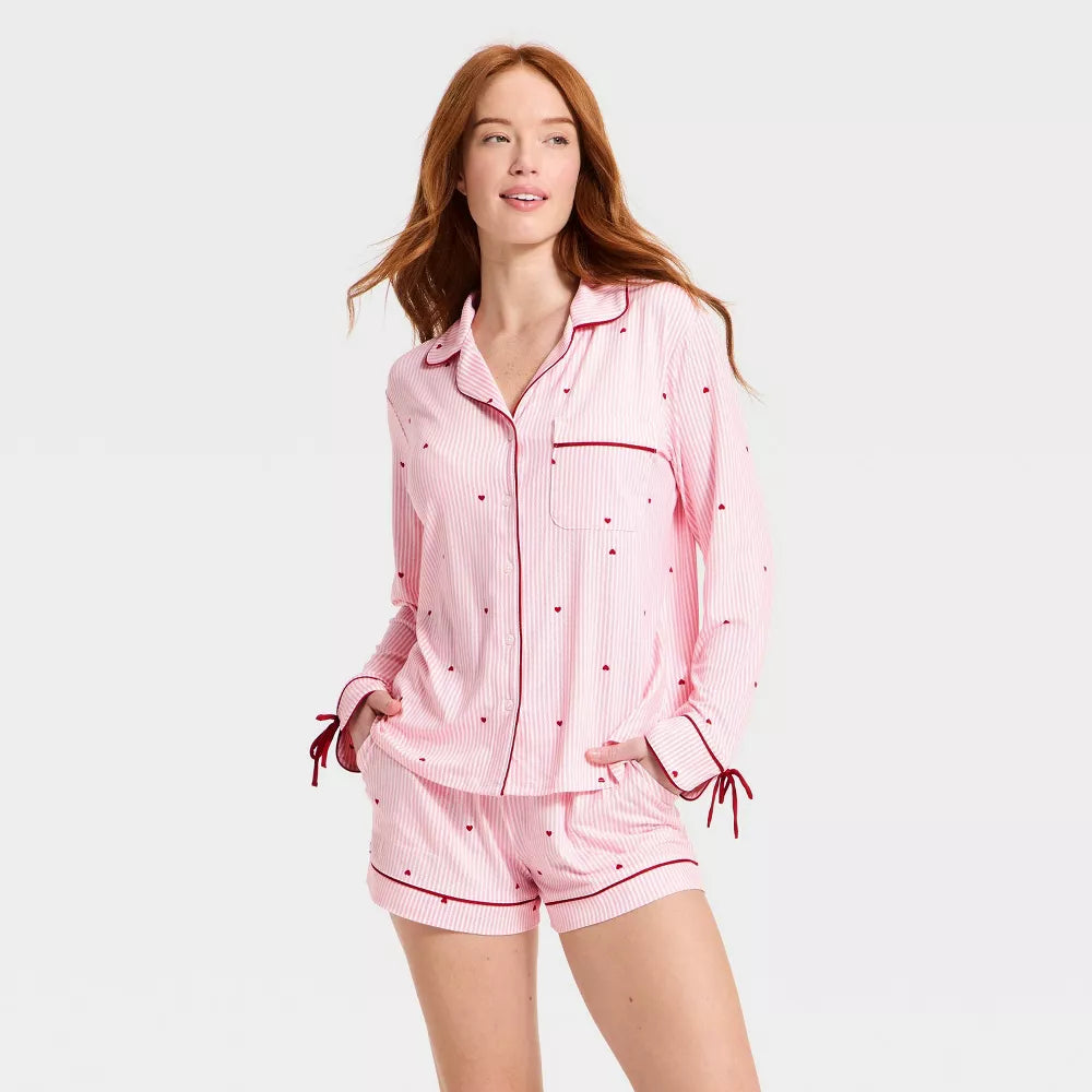 Blissful Pink Striped Pajama Set keeps you feeling cute and comfortable all Galentine's Day long.
